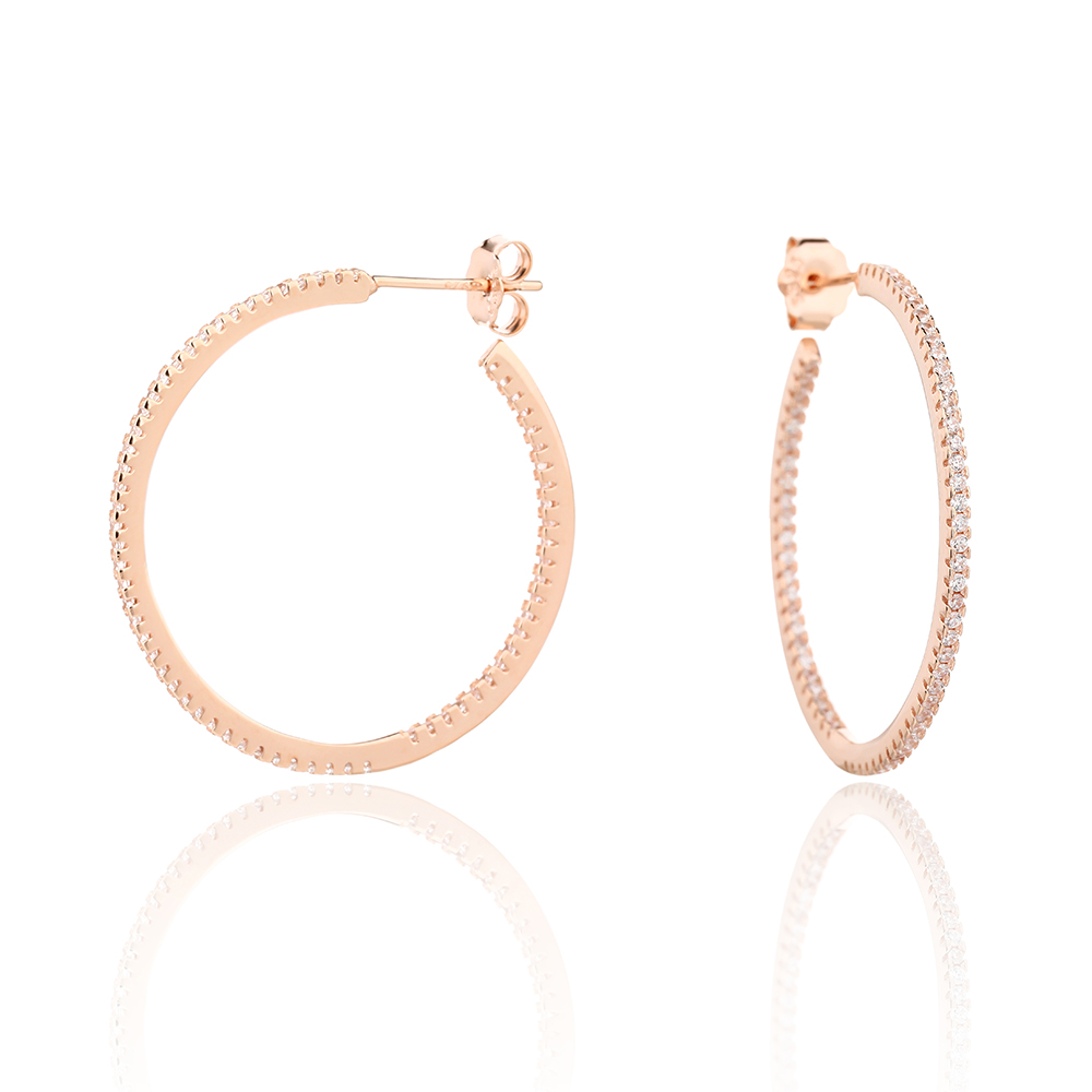 עגילי חישוק קלאסיים עם שיבוץ זרקונים נוצצים לכל האורך, שמעניקים להם זוהר מושלם מכל זווית. עגילים שמוסיפים טאץ' יוקרתי לכל הופעה, בלי מאמץ.