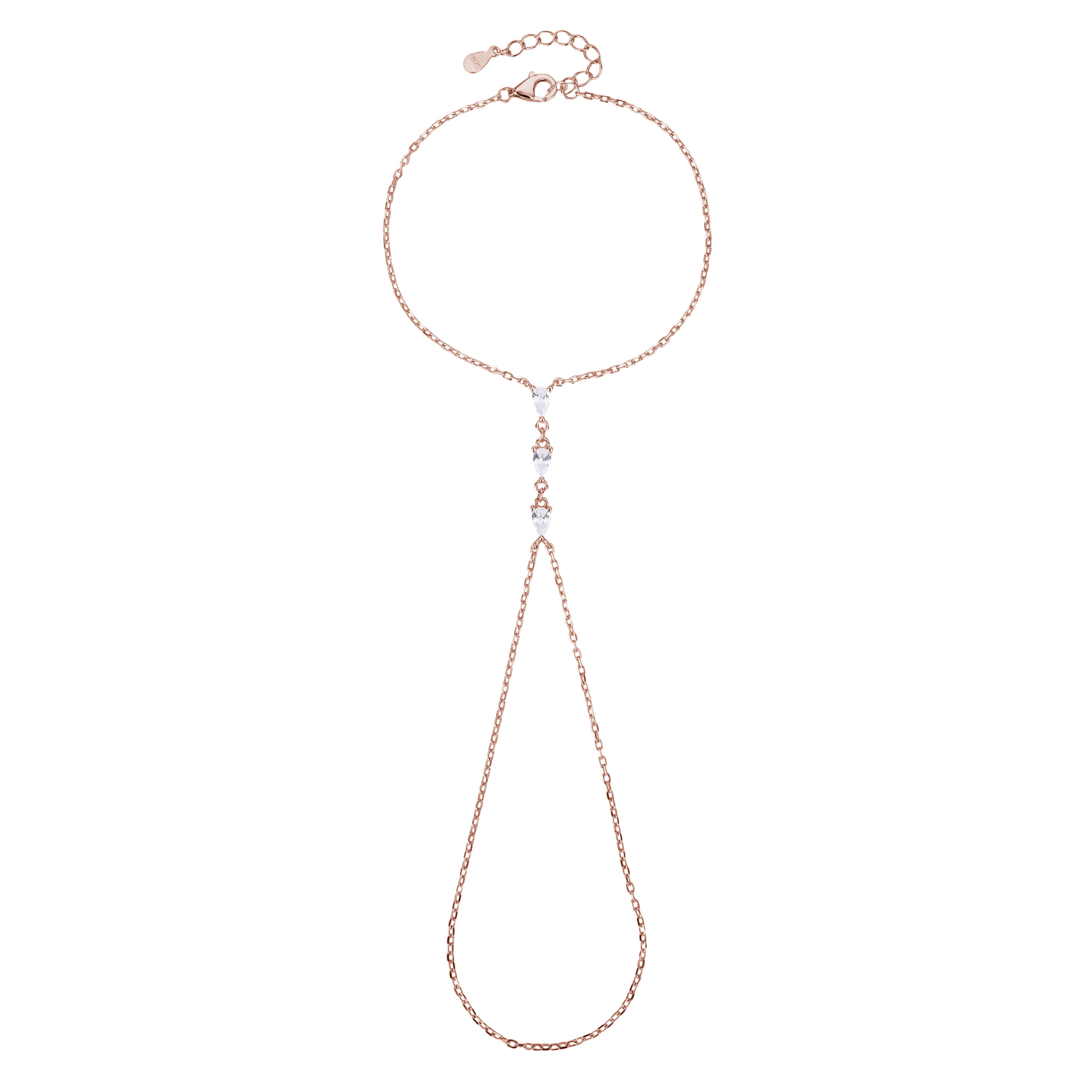 צמיד משולב טבעת עשוי כסף אמיתי 925 בציפוי זהב אדום (רוז גולד) משובץ אבני זרקון אורך 15+5 סמ