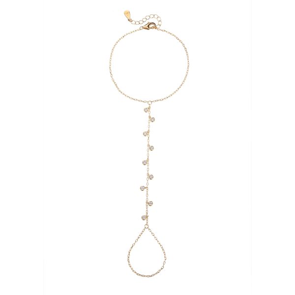 צמיד The Gold Dangle Stone Hand Bracelet | צמיד טבעת ציפוי זהב משובץ תליוני אבנים עגולות