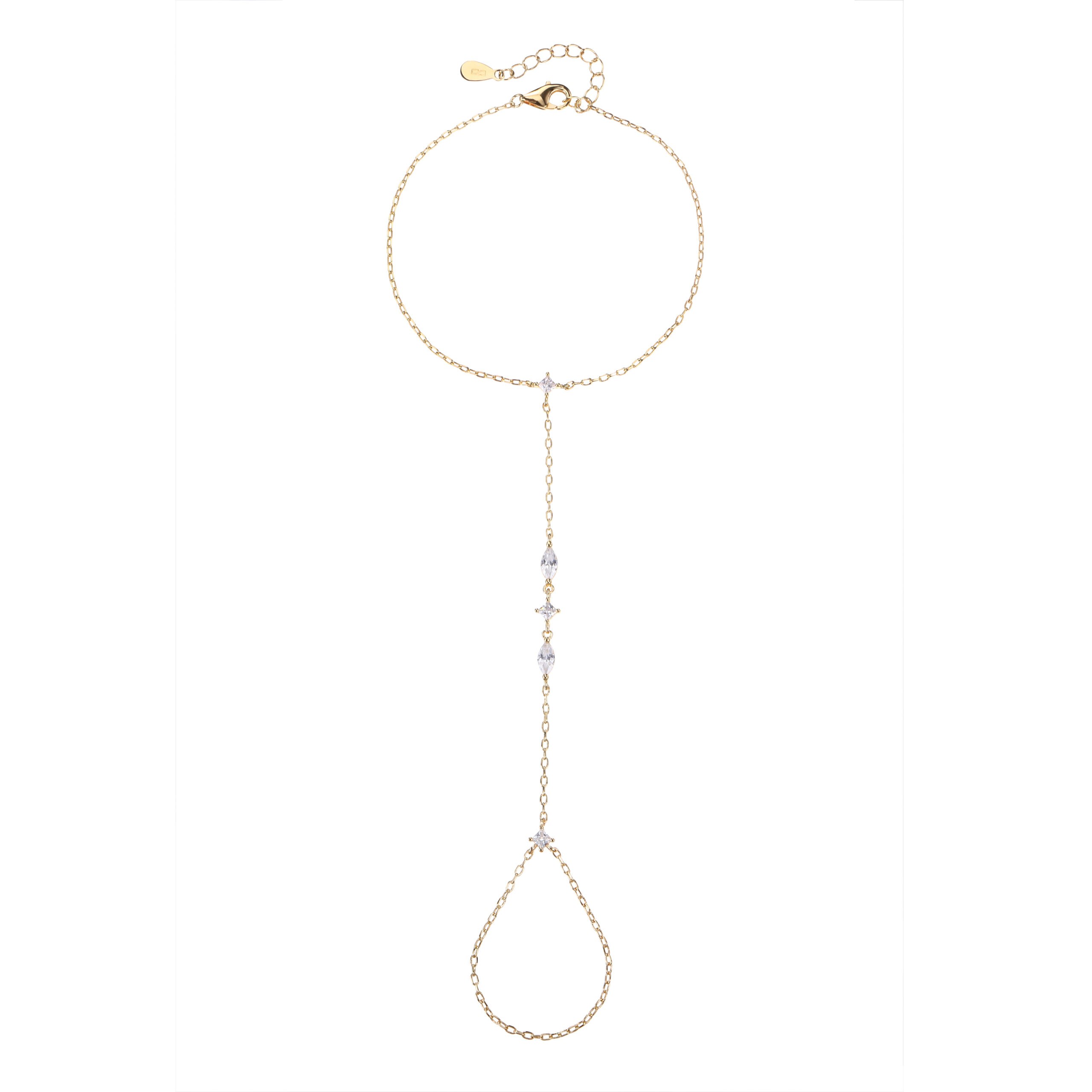 צמיד The Gold Triple Marquise Hand Bracelet | צמיד טבעת ציפוי זהב משובץ שלוש אבני מרקיזה