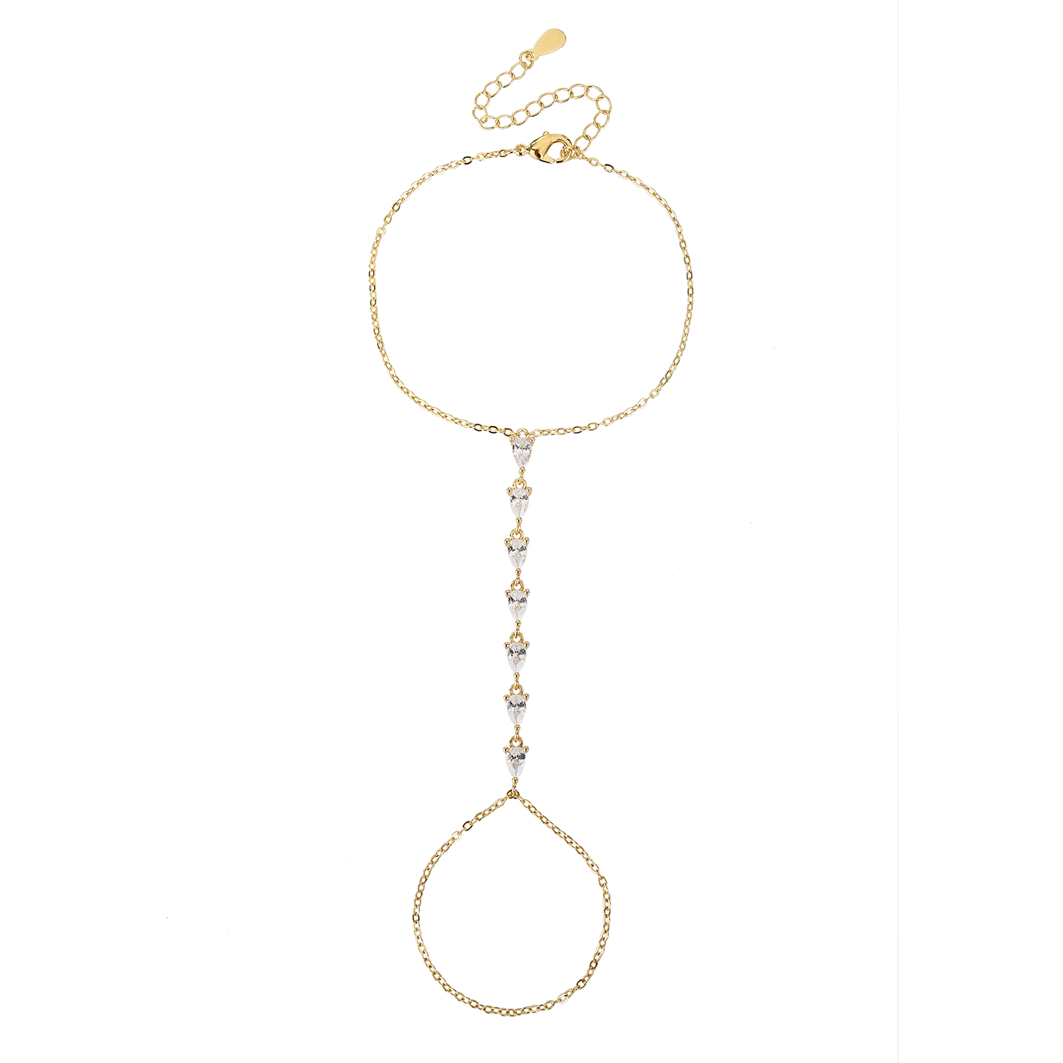 צמיד The Gold Multi Round Hand Chain | צמיד משולב טבעת ציפוי זהב שורת אבנים עגולות