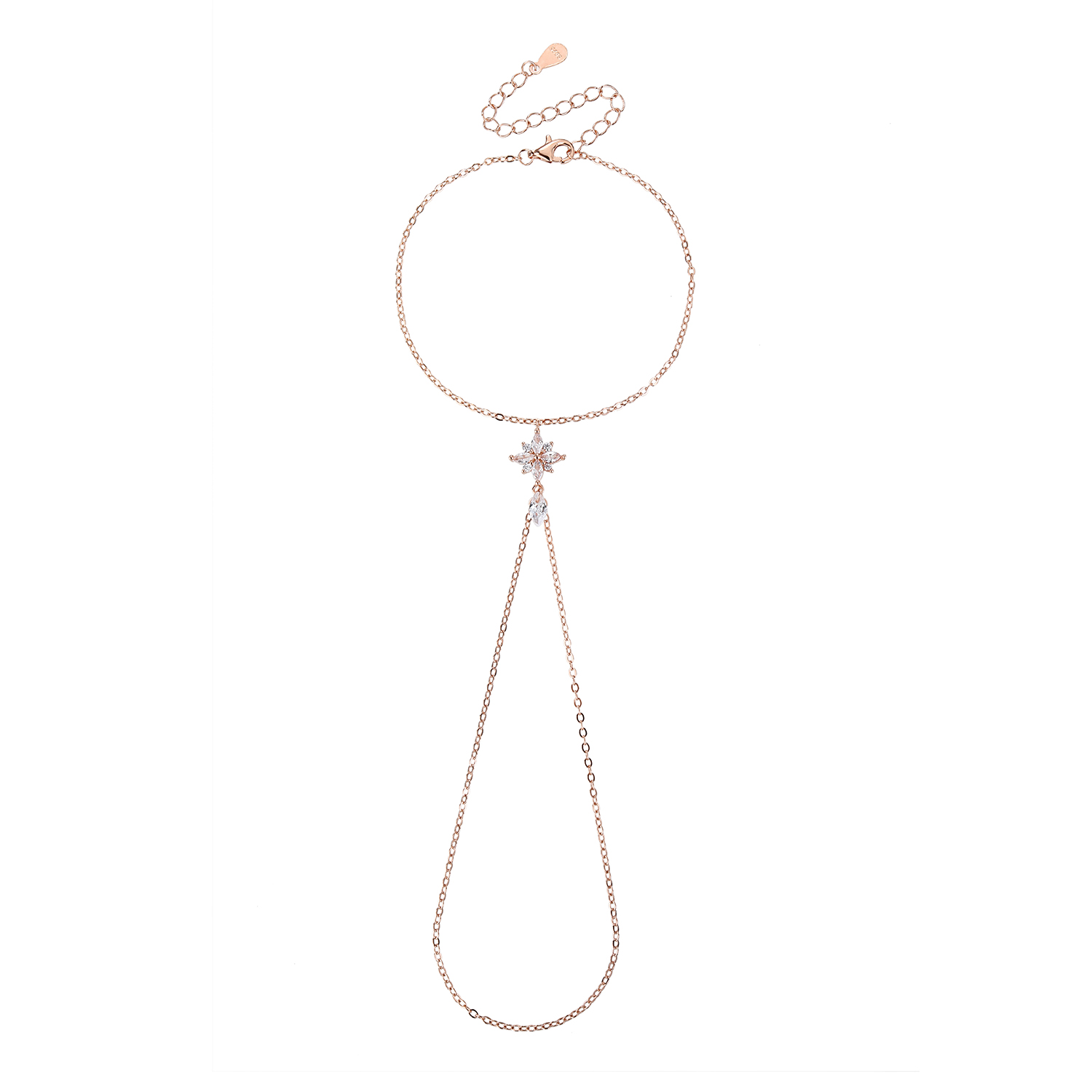 צמיד משולב טבעת עשוי כסף אמיתי 925 בציפוי זהב אדום (רוז גולד) משובץ אבני זרקון