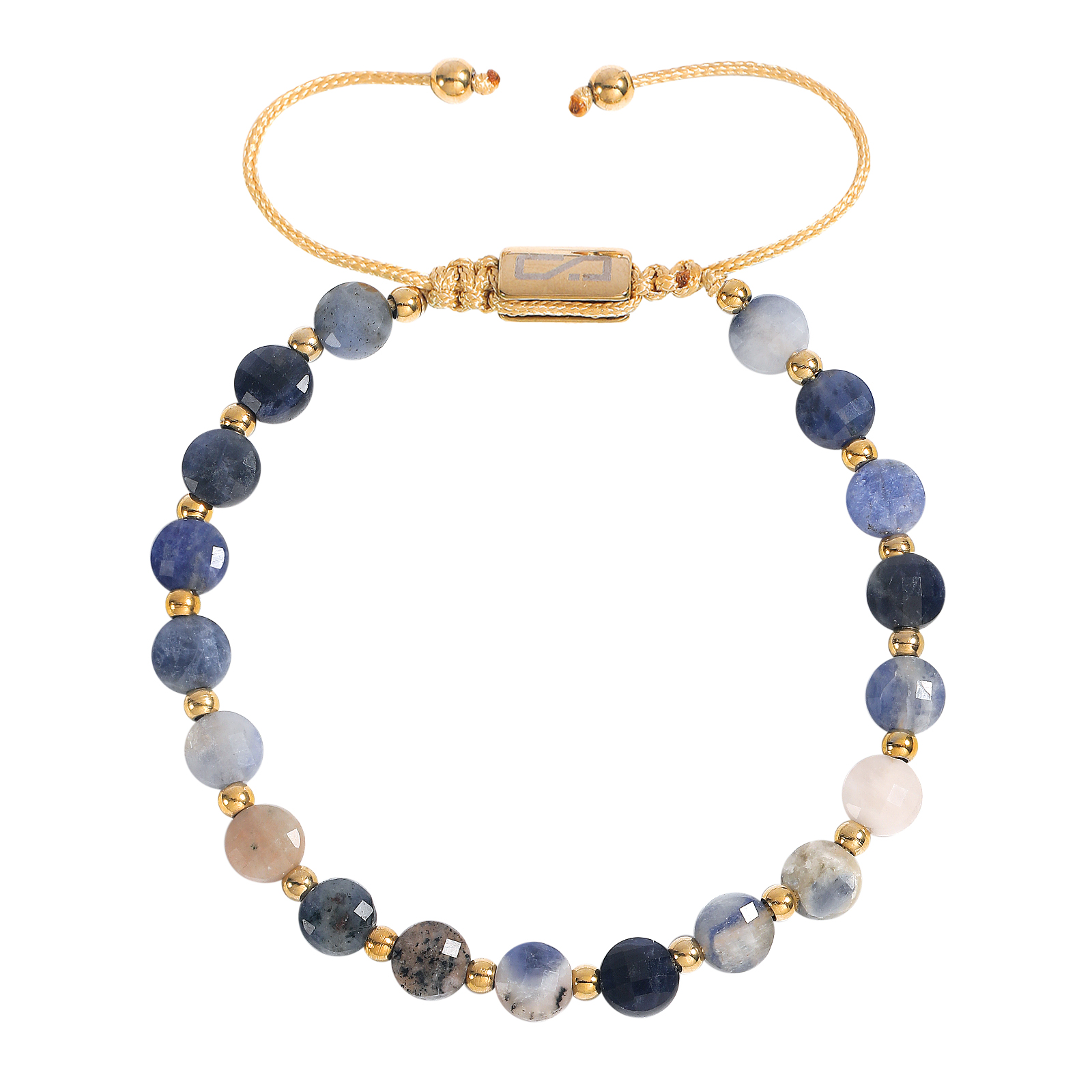 צמיד אבני חן בגוונים טבעיים של כחול ושמנת, משובץ חרוזי זהב מינימליסטיים