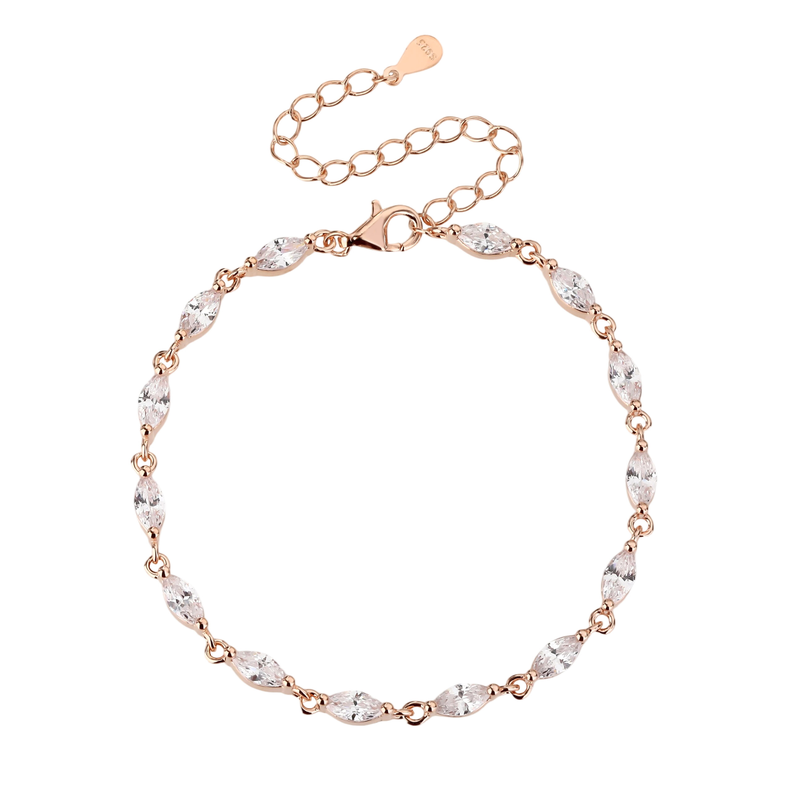 עשוי כסף אמיתי 925 בציפוי זהב אדום (רוז גולד) משובץ אבני זרקון אורך הצמיד: 15+5 ס”מ