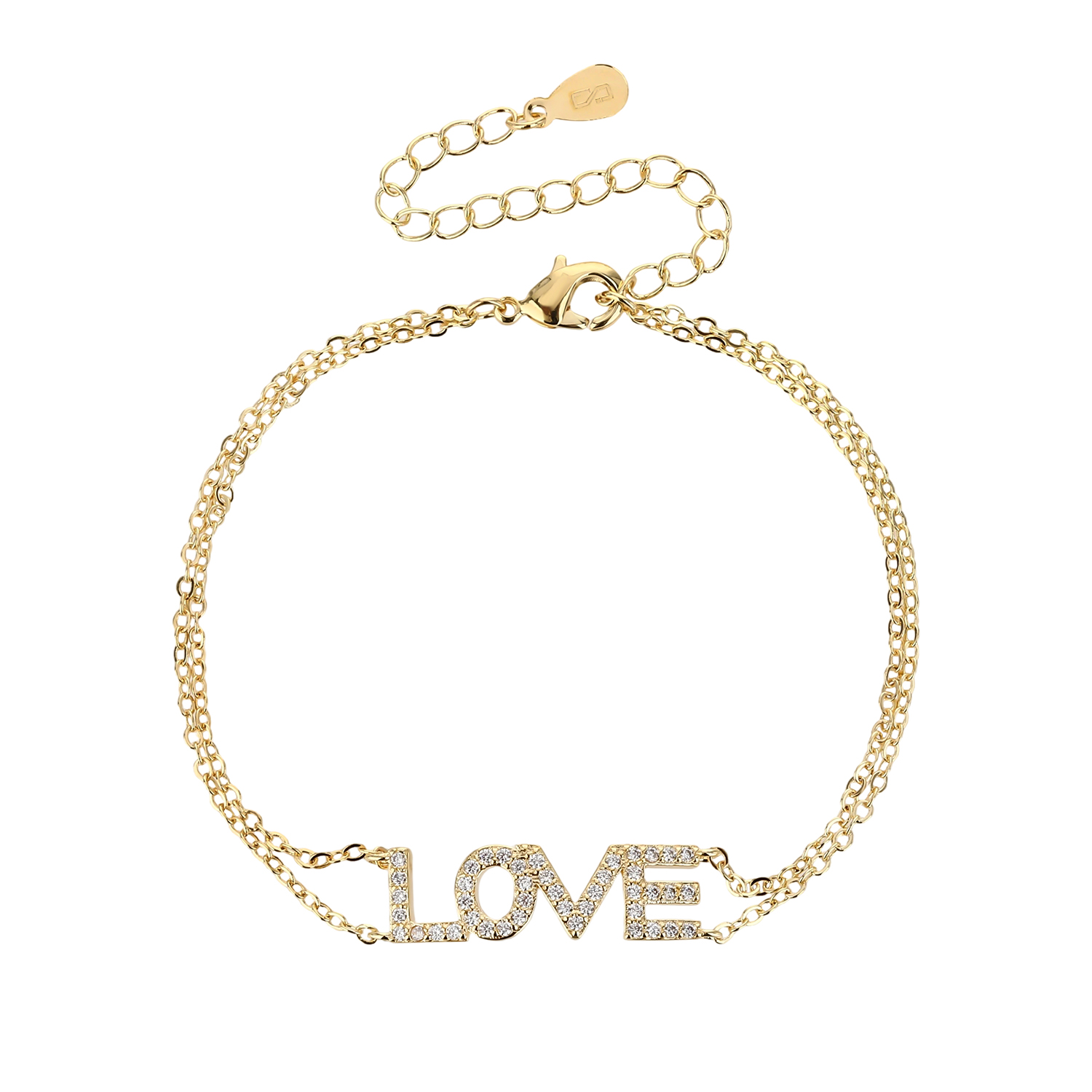 The Golden Love | צמיד כפול בציפוי זהב עם כיתוב LOVE משובץ