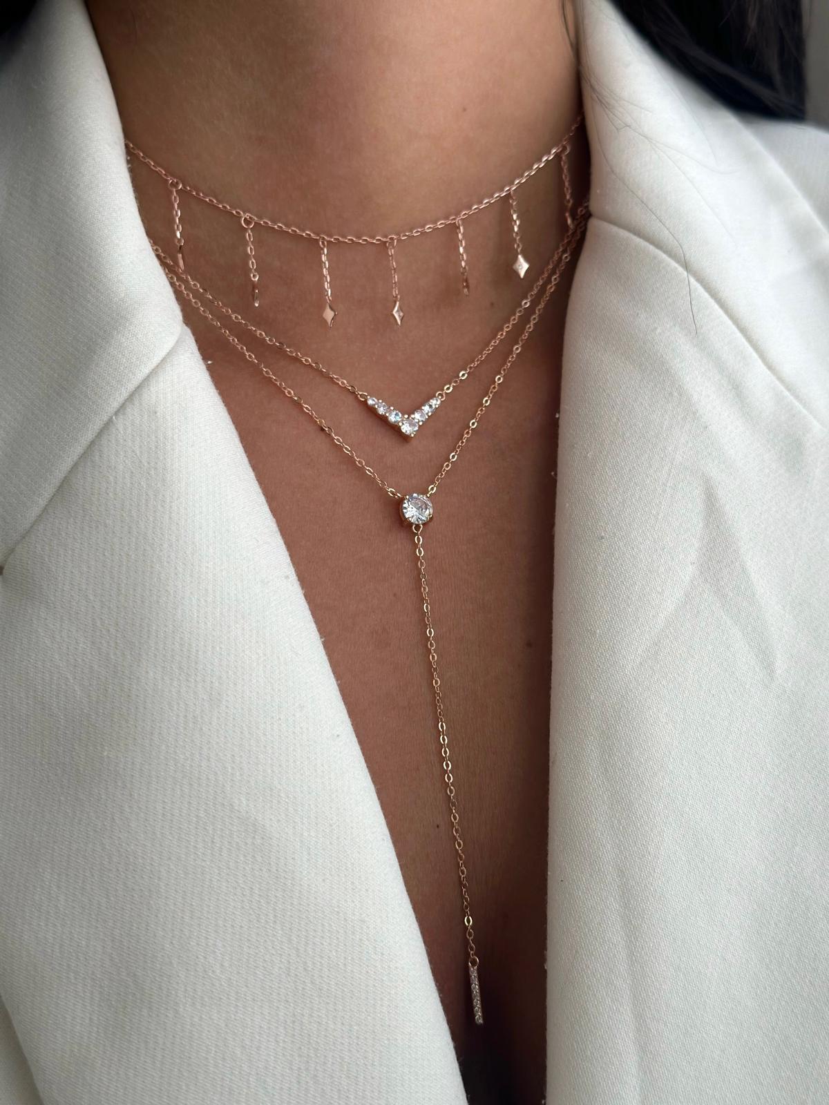 שרשרת עניבה תליון טיפה וזרקונים – צבעים לבחירה