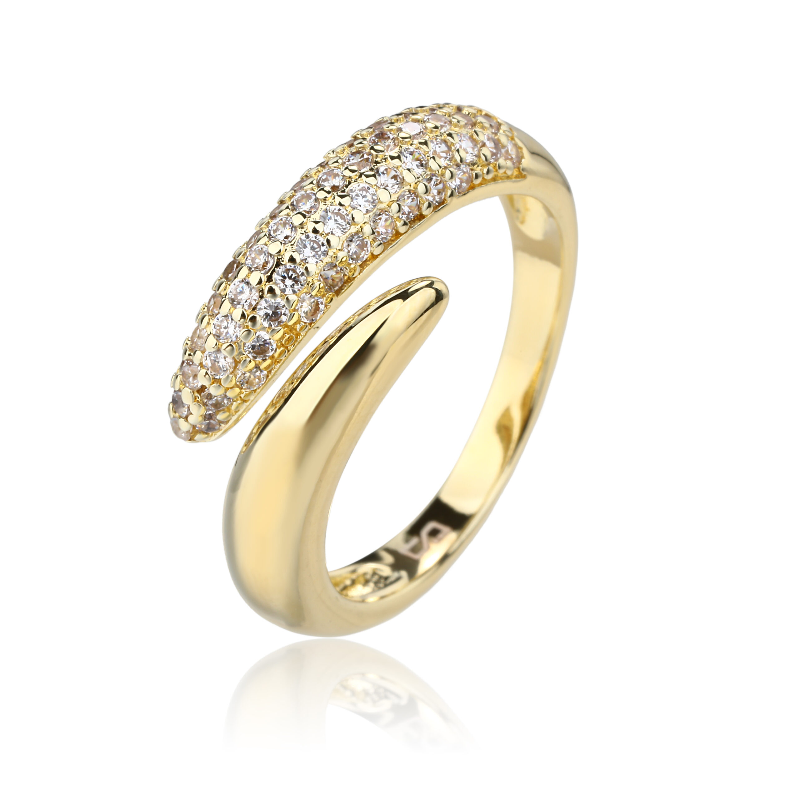 עשויה פליז בציפוי זהב 14K עובי הציפוי 2 מיקרון משובצת באבני זרקון מידת הטבעת ניתנת לבחירה