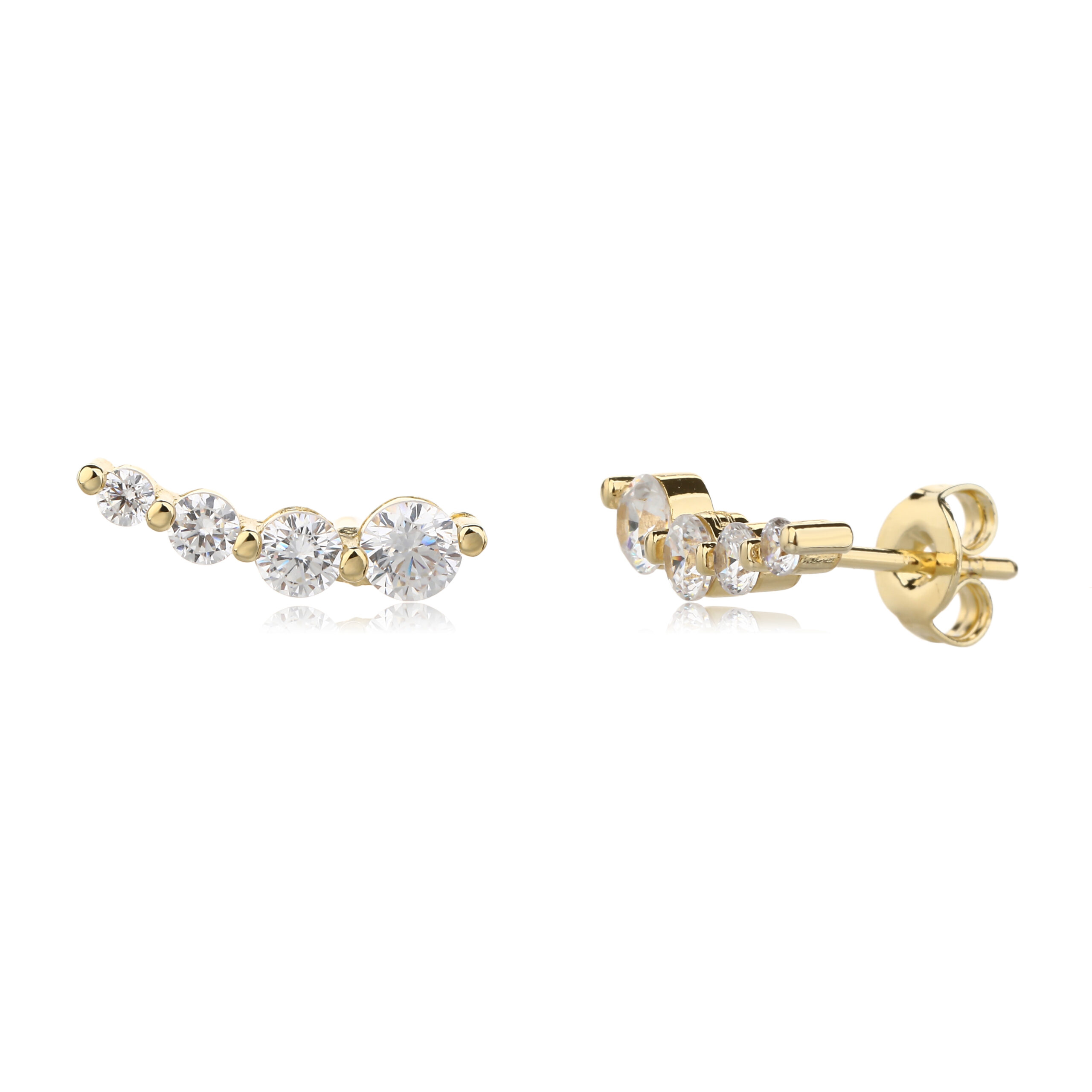 עגיל מניפה עשוי פליז בציפוי זהב 14K 2 מיקרון משובץ באבני זרקון העגילים מגיעים כזוג.