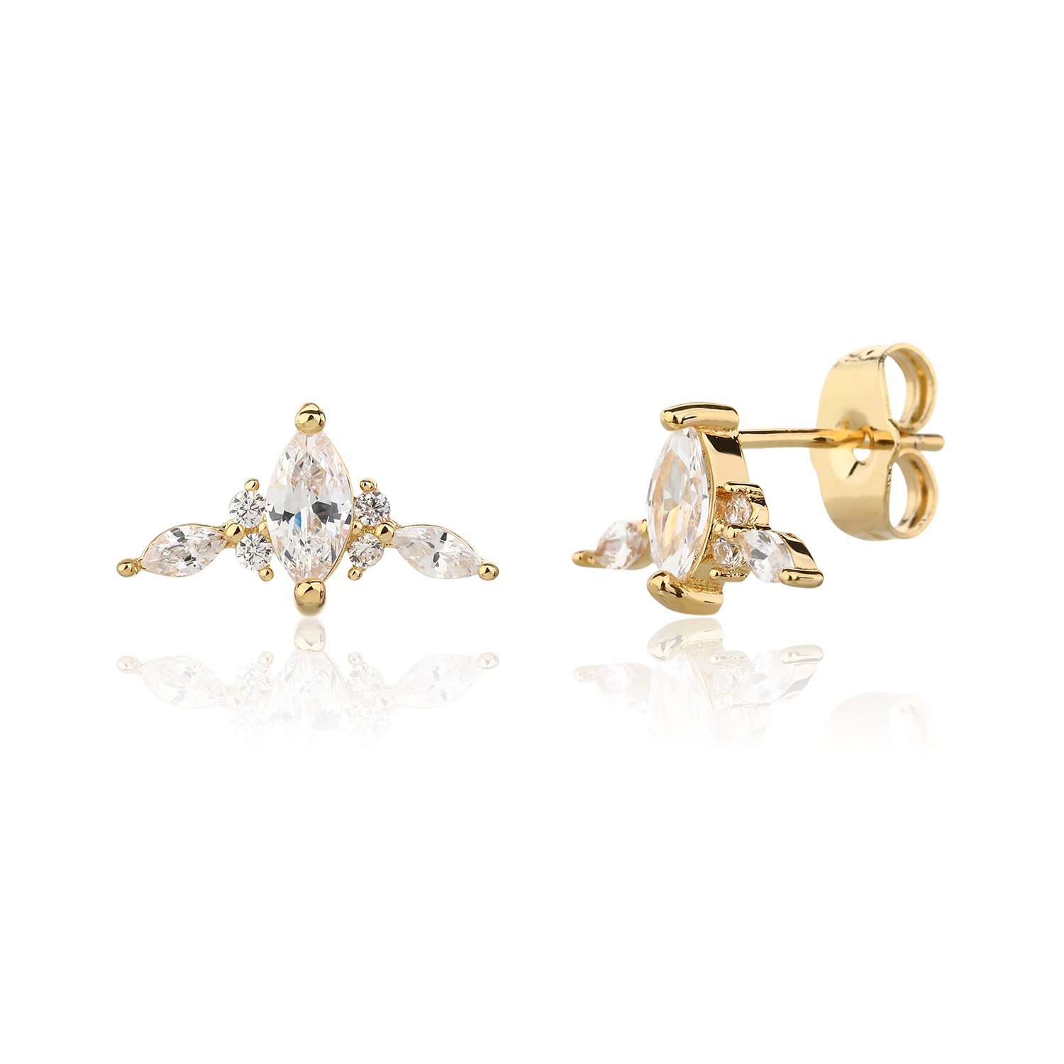 עגיל צמוד עשוי פליז בציפוי זהב 14K 2 מיקרון משובץ באבני זרקון העגילים מגיעים כזוג.