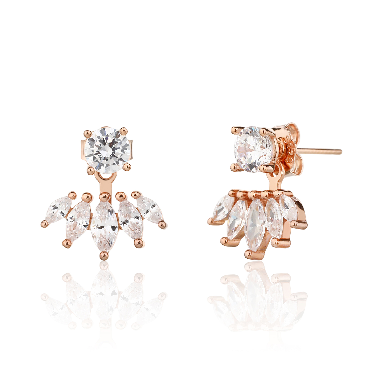 עשויים כסף אמיתי 925 ומצופים זהב אדום (רוז גולד) משובצים באבני זרקון העגילים מגיעים כזוג
