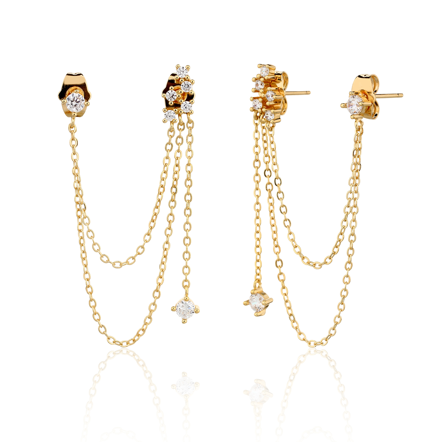 עגיל שני חורים עשוי פליז בציפוי זהב 14k)2 מיקרון) העגילים מגיעים כזוג