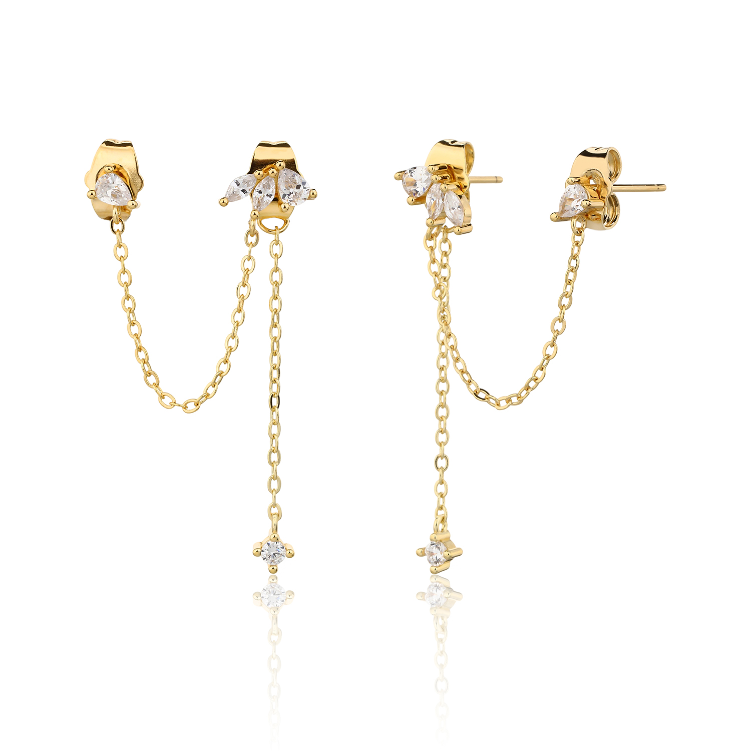 עגיל שני חורים עשוי פליז בציפוי זהב 14k)2 מיקרון) העגילים מגיעים כזוג