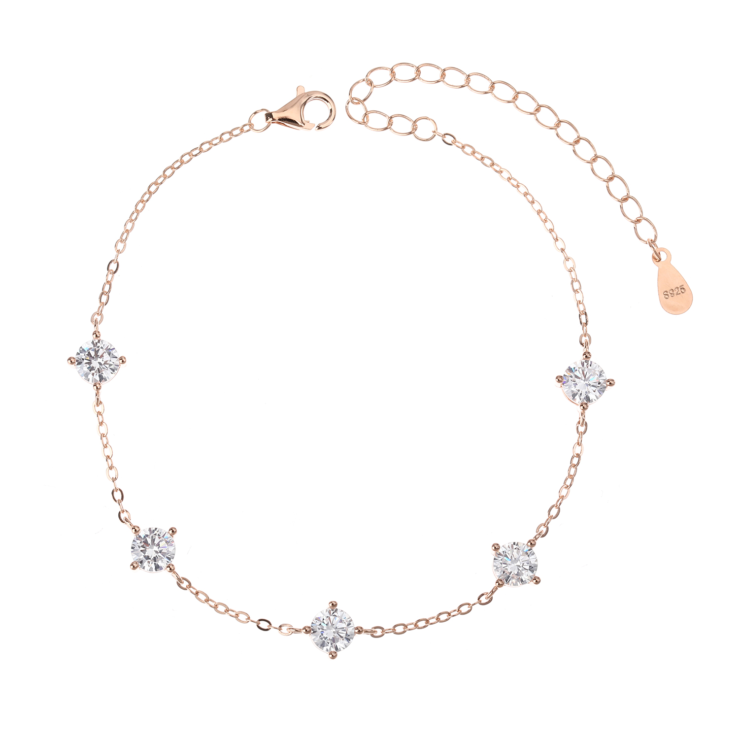 עשוי כסף אמיתי 925 בציפוי זהב אדום (רוז גולד) משובץ אבני זרקון אורך הצמיד: 15+5 ס”מ