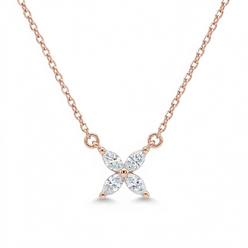 שרשרת עניבה נופלת עשויה כסף אמיתי 925 בציפוי זהב אדום (רוז גולד) משובצת אבני זרקון אורך השרשרת: 37+7 ס”מ