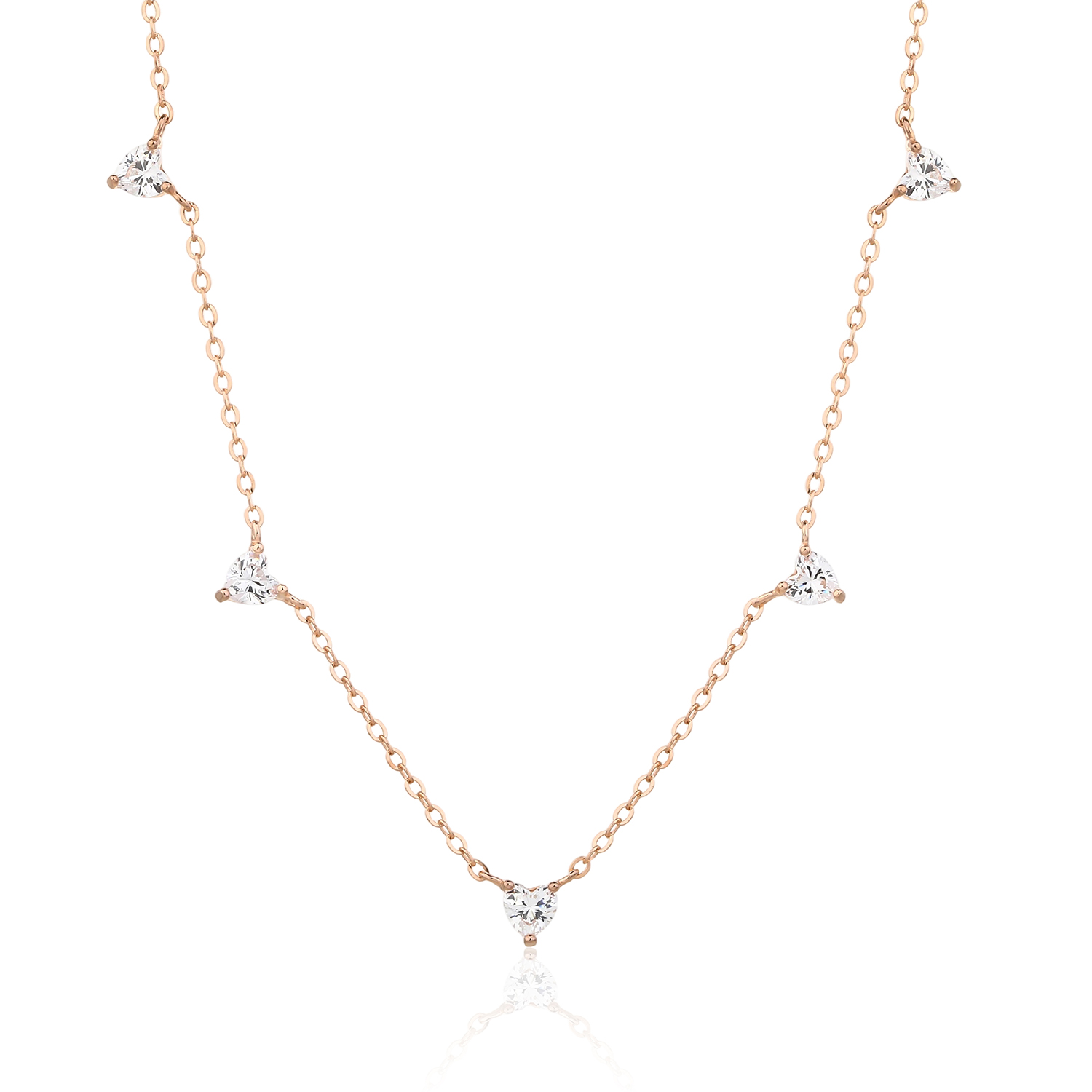 שרשרת קולר (צ׳וקר) עשויה כסף אמיתי 925 בציפוי זהב אדום (רוז גולד) משובצת אבני זרקון אורך השרשרת: 35+5 ס”מ