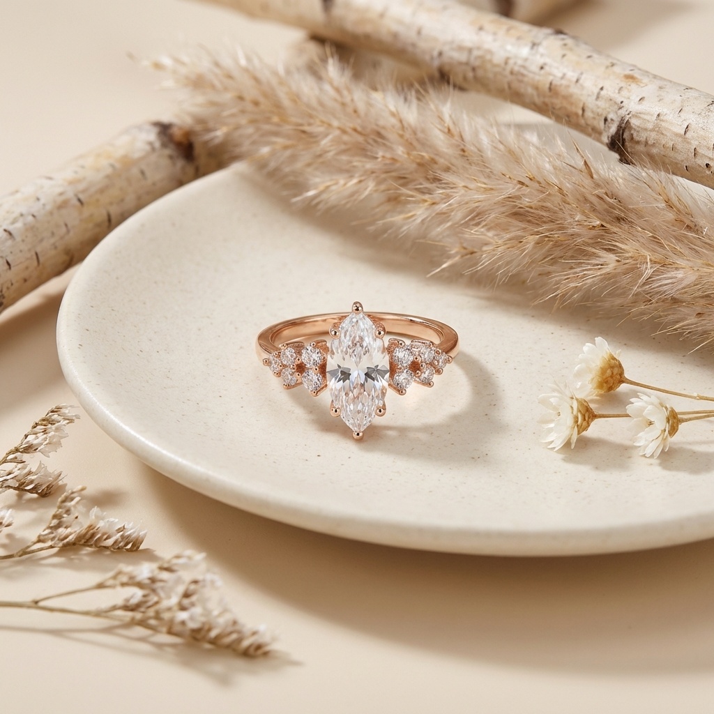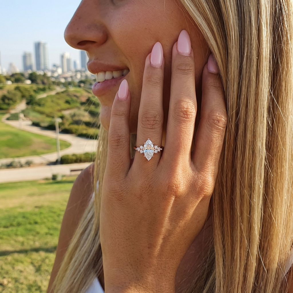 Marquise Rose Gold Ring | טבעת מרקיזה רוז גולד משובצת